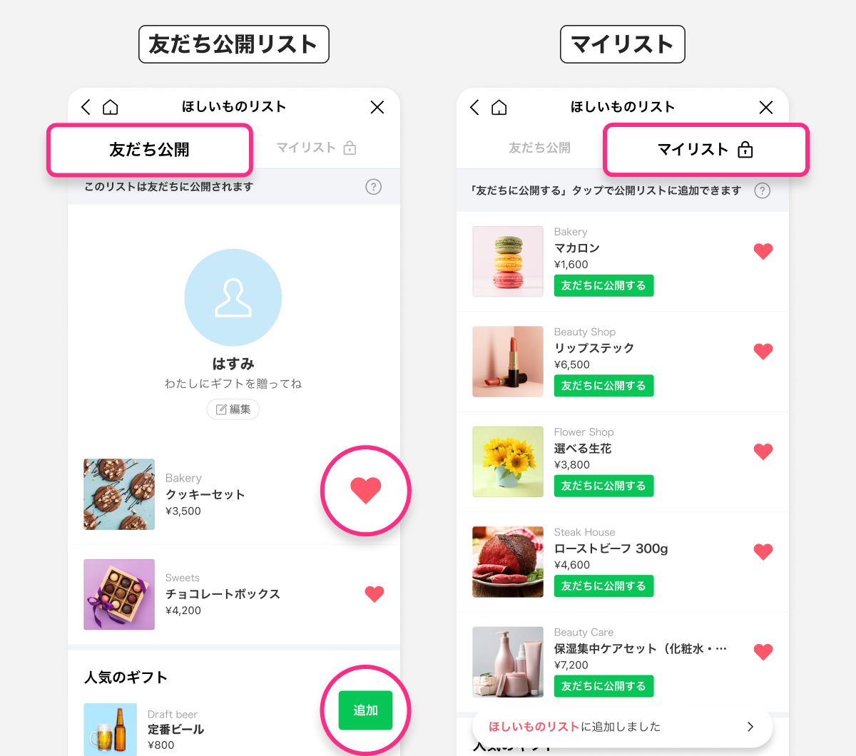 友だち公開リストは、自分のほしいものを友だちに共有することができる公開リストです。