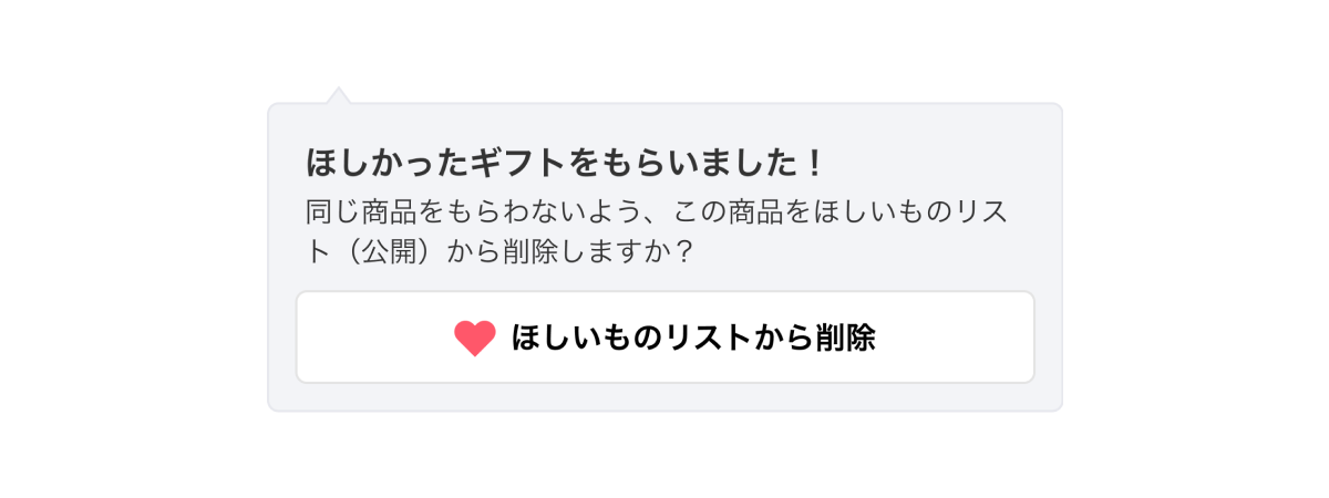 ※グループのトークからアクセスした場合やほしいものリストに商品が追加されていない場合は表示されません。