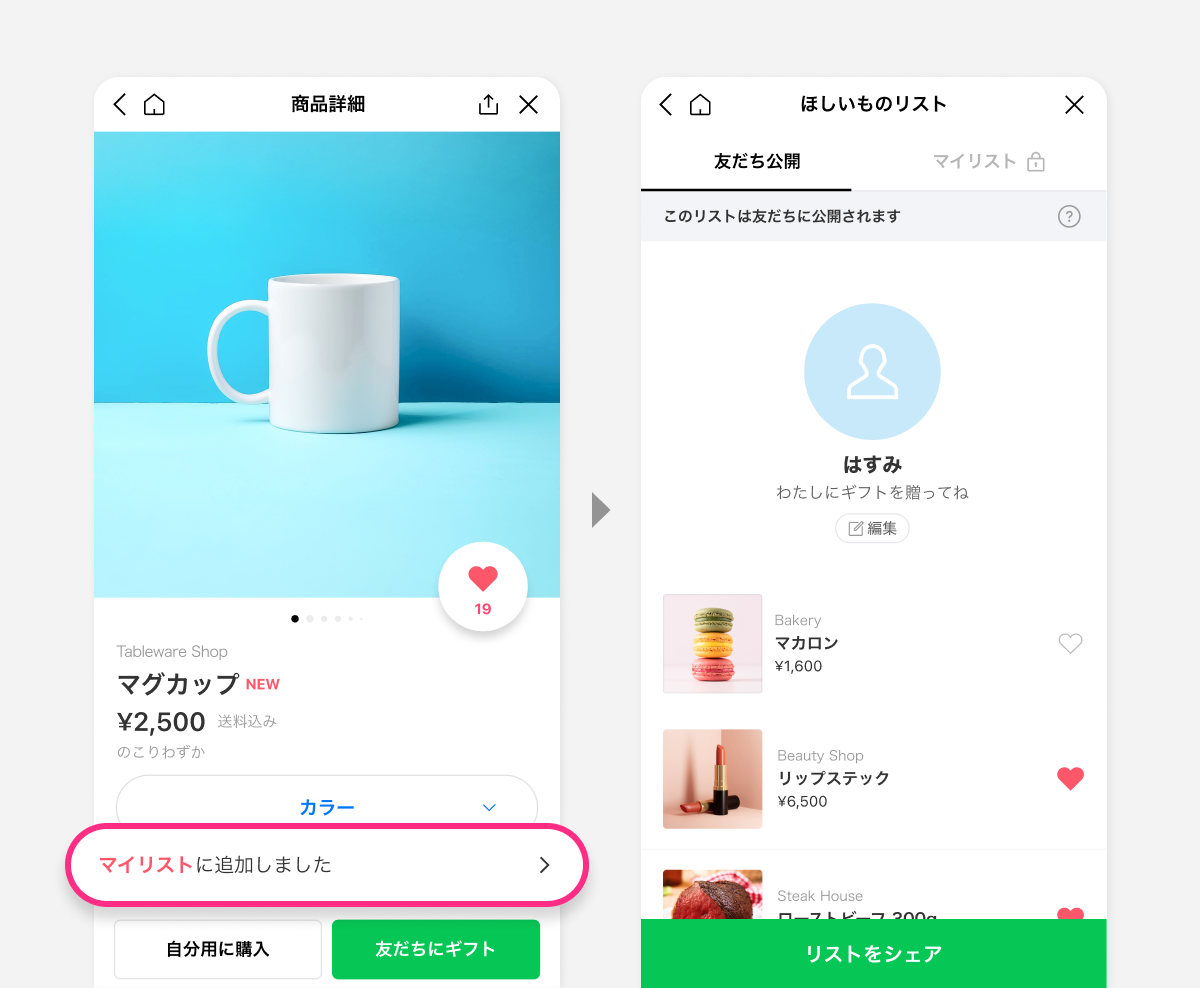 ※マイリストは自分のみが確認することができます。ほしいものリストとは異なり、友だちに公開されることはありません。